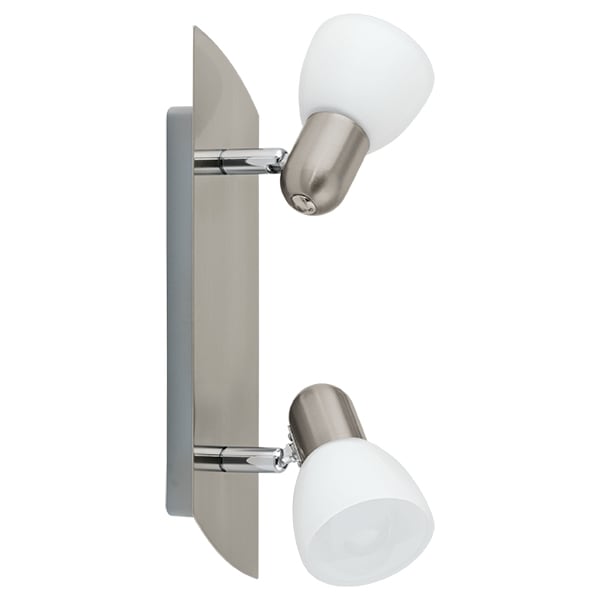 Chrome metal frame with flexible arms. Blown clear Pyrex glass diffusers with frosted inner part. Hand-blown overlay color mass glass diffusers. Founded in 1974, Ideal Lux is born as a small reality led by the intuition of creating a current product, but at the same time affordable for a wide bracket of public, a target that is still being pursued today.
