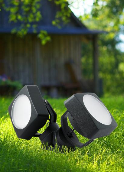 LED floodlight with single or double lights made of shockproof resin material, UV-rays stabilized, rust and corrosion-free. Suitable for indoor and outdoor installations on wall and ceilings, in the ground or on spikes. Square, ring or eyelid cover versions available with no visible screws. Supplied as standard with TÜV approved, long-life and efficient GX53 LED lamp included. The floodlight is fully adjustable and it can tilt and turn at will. Insulation class II, Protection rating IP66.