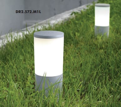 LED lamp range in modern style, made of shockproof resin material, UV-rays stabilized, rust and corrosion-free. Round bollards in different sizes, spike and wall mounted versions available. Provided with opal PMMA diffuser to get a uniform light distribution. Supplied with TÜV approved, long-life and efficient E27 LED filament lamps suitable for outdoor use included.Specifications