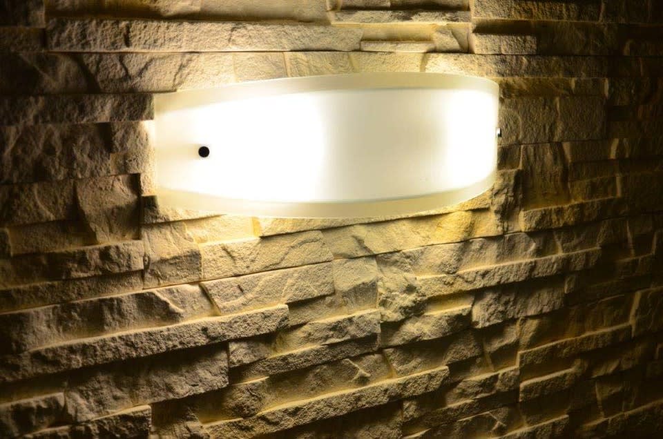 Great wall lamp with a simple design made of glass. Practical addition to the interior of your living room or bedroom.
