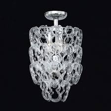 Modern ceiling lamp made of chrome metal frame with modular elements of hand made pyrex glass. Lamp suitable for your living room or dining room.