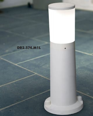 LED lamp range in modern style, made of shockproof resin material, UV-rays stabilized, rust and corrosion-free. Round bollards in different sizes, spike and wall mounted versions available. Provided with opal PMMA diffuser to get a uniform light distribution. Supplied with TÜV approved, long-life and efficient E27 LED filament lamps suitable for outdoor use included. Insulation class II, protection rating IP55.