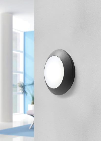 LED bulkhead lamp with round shape and no visible screws. Made of shockproof resin material, UV-rays stabilized, rust and corrosion-free. Suitable for wall and ceiling installation. Supplied with TÜV approved, long-life and efficient GX53 LED lamps included. Insulation class II, Protection rating IP66.